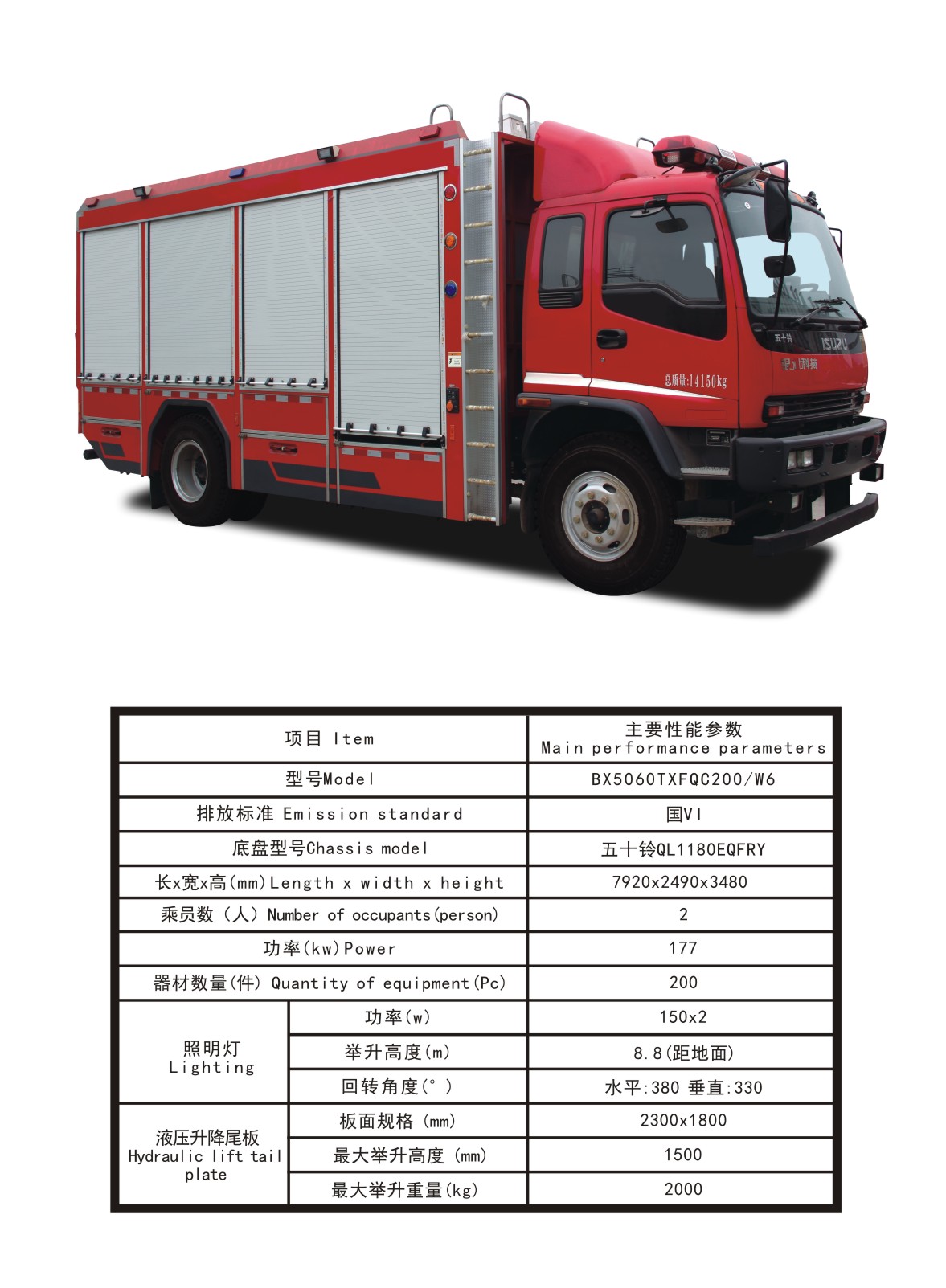BX5140TXFQC200/W6器材消防車
